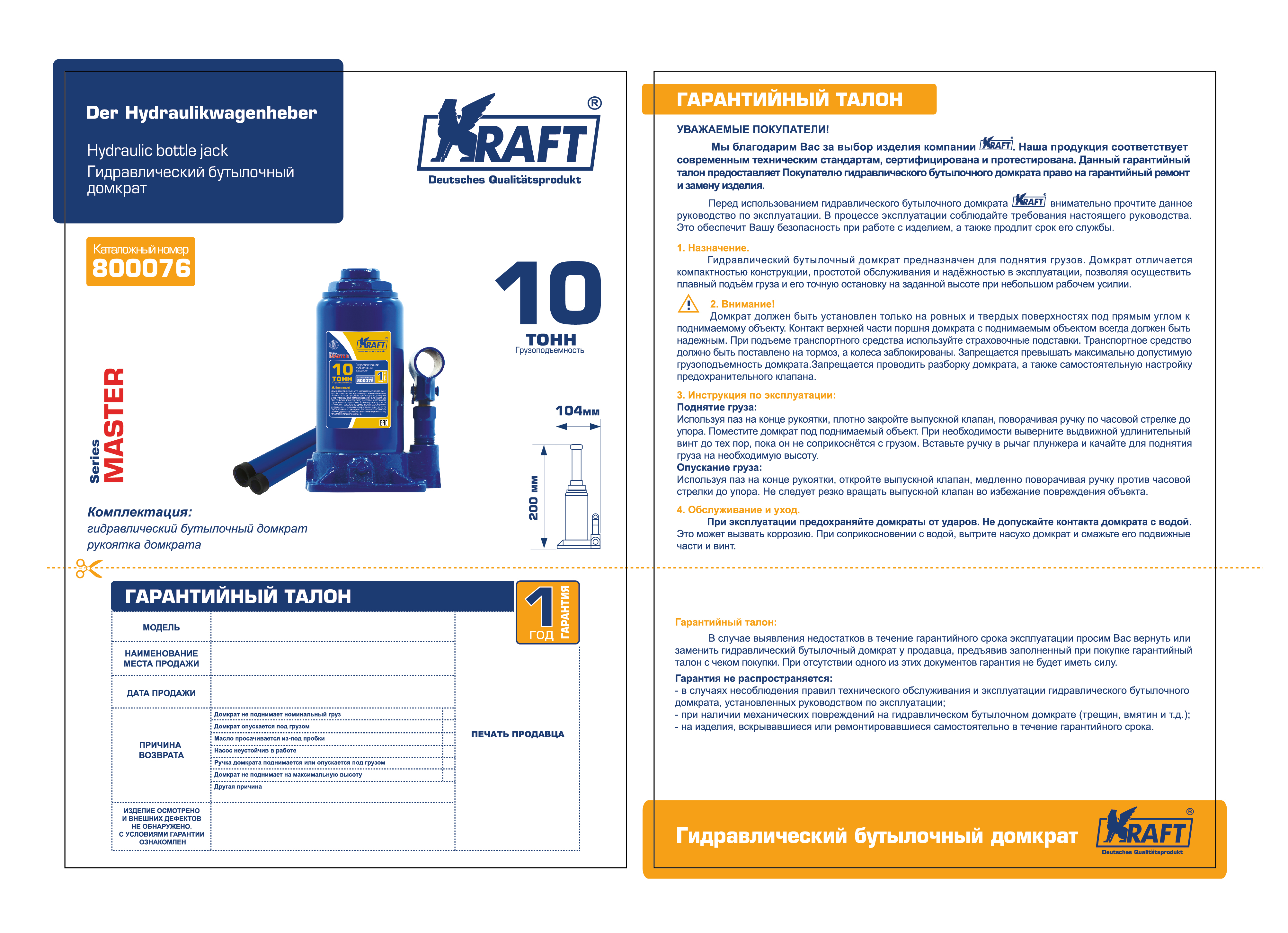 Вы можете купить Домкрат бутылочный 10 тонн, серия Master, KRAFT в интернет-магазине besfo по доступной цене с доставкой по России. На странице товара Домкрат бутылочный 10 тонн, серия Master, KRAFT вы найдете подробное описание, фотографии, отзывы реальных покупателей, характеристики, возможность подобрать аналоги и аксессуары для своего автомобиля.