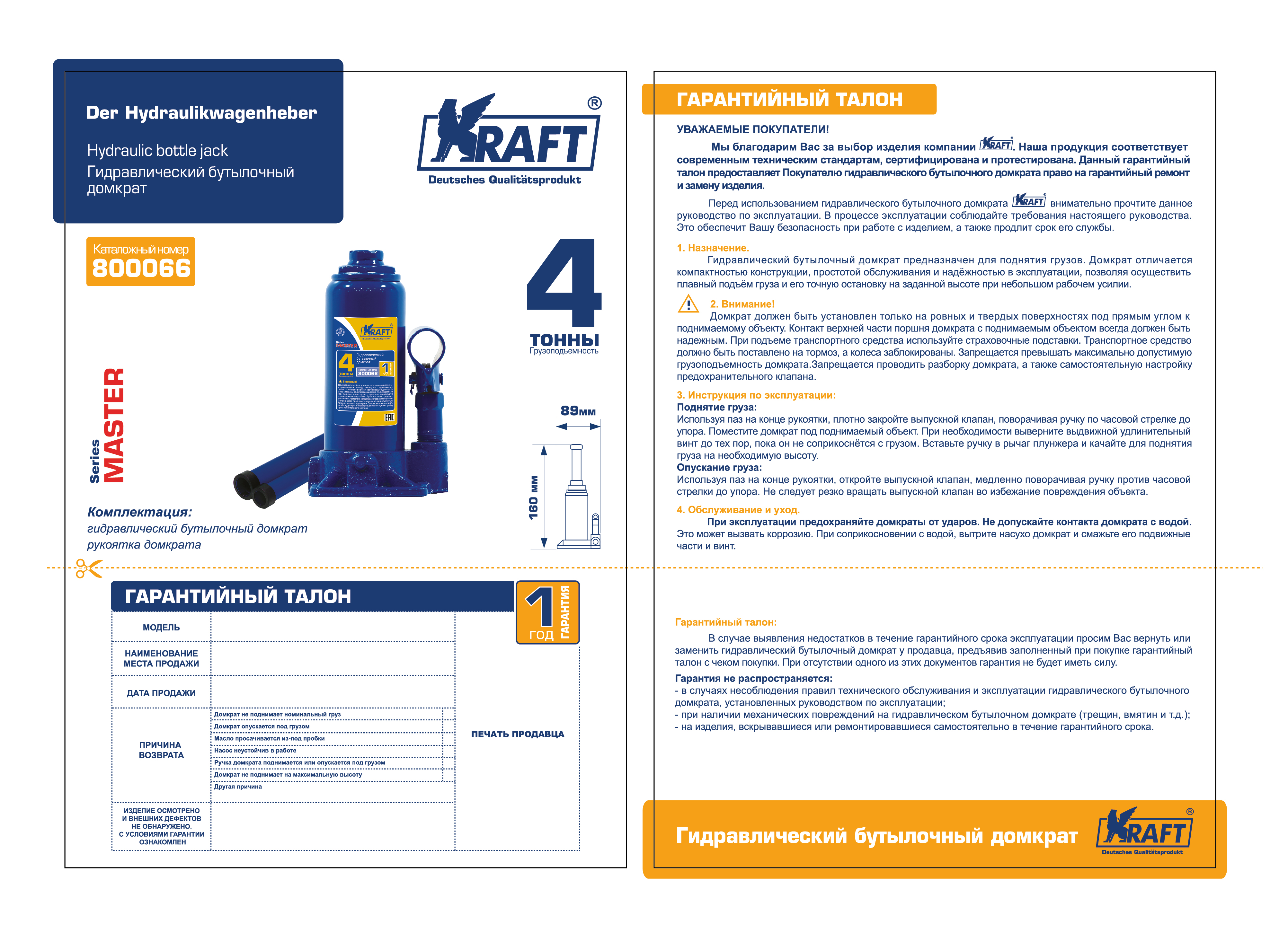 Вы можете купить Домкрат бутылочный 4 тонны, серия Master, KRAFT в интернет-магазине besfo по доступной цене с доставкой по России. На странице товара Домкрат бутылочный 4 тонны, серия Master, KRAFT вы найдете подробное описание, фотографии, отзывы реальных покупателей, характеристики, возможность подобрать аналоги и аксессуары для своего автомобиля.